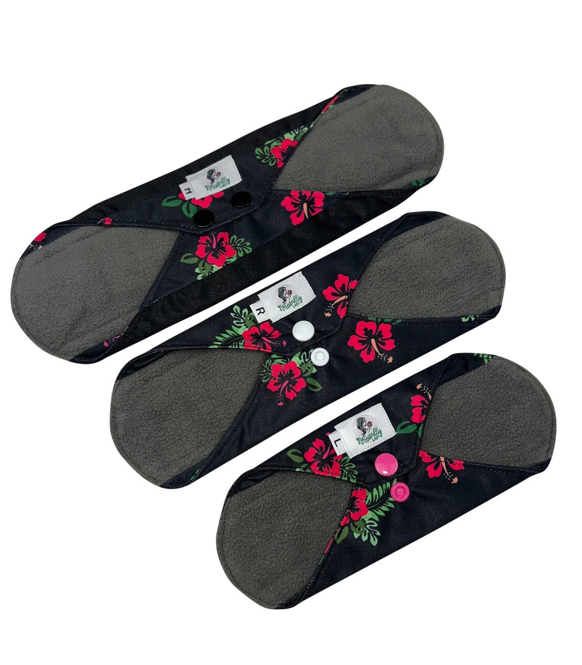 Anti-slip 9pcs Starter Set - Black Reusable Sanitary Pads - YOU CHOOSE Sizes to compose your set
