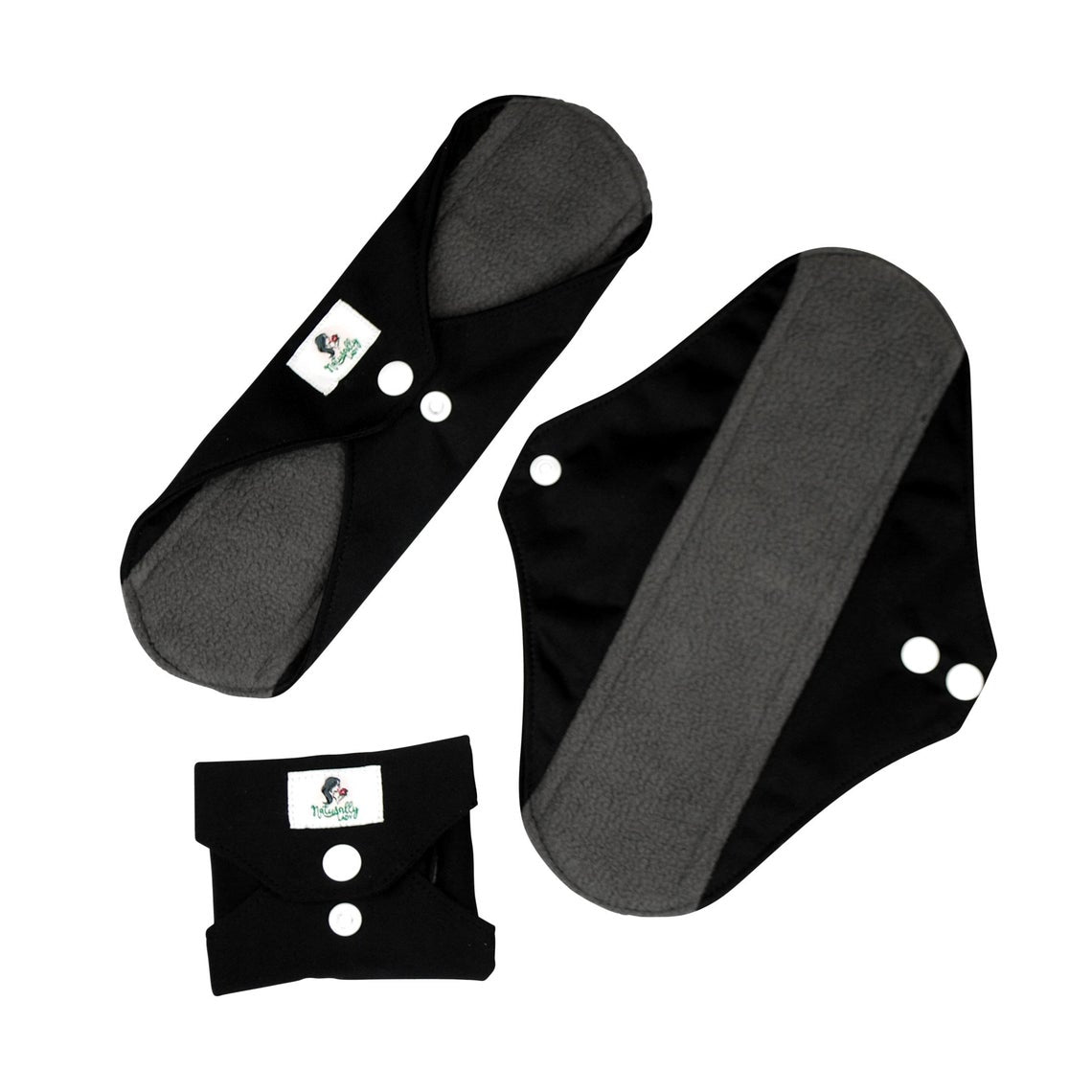 Reusable Sanitary Pads Black - Starter Set 9 pcs YOU CHOOSE Sizes to compose your set